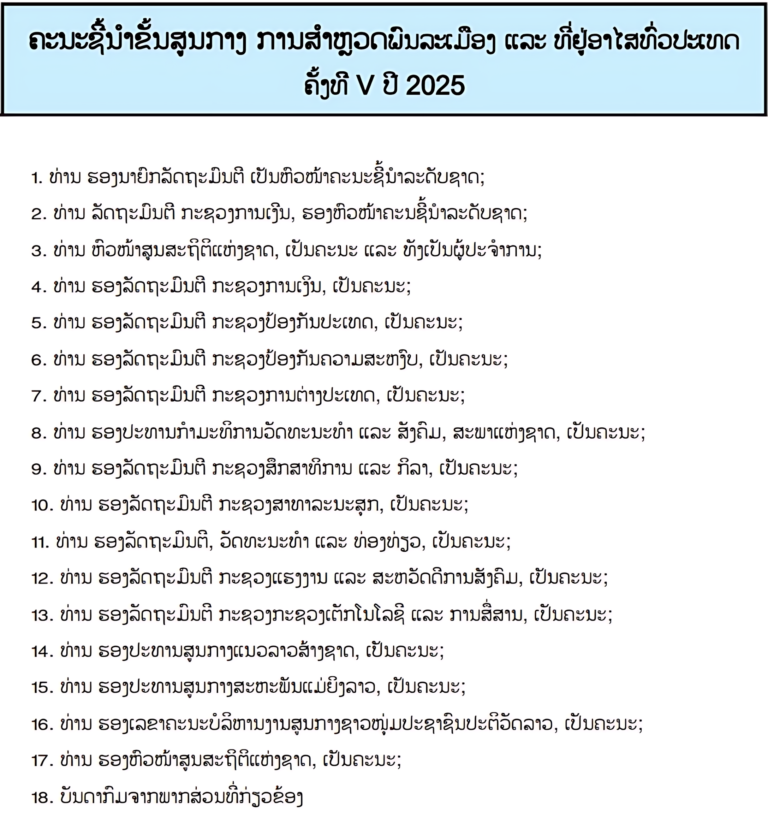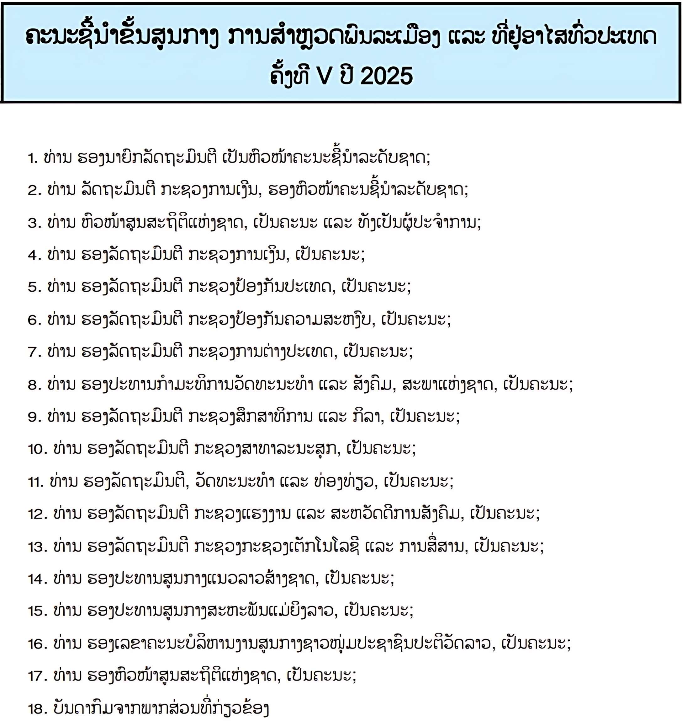 ໂຄງຮ່າງການບໍລິຫານການສໍາຫຼວດພົນລະເມືອງ ແລະ ທີ່ຢູ່ອາໄສ ທົ່ວປະເທດ ຄັ້ງທີ V ປີ 2025